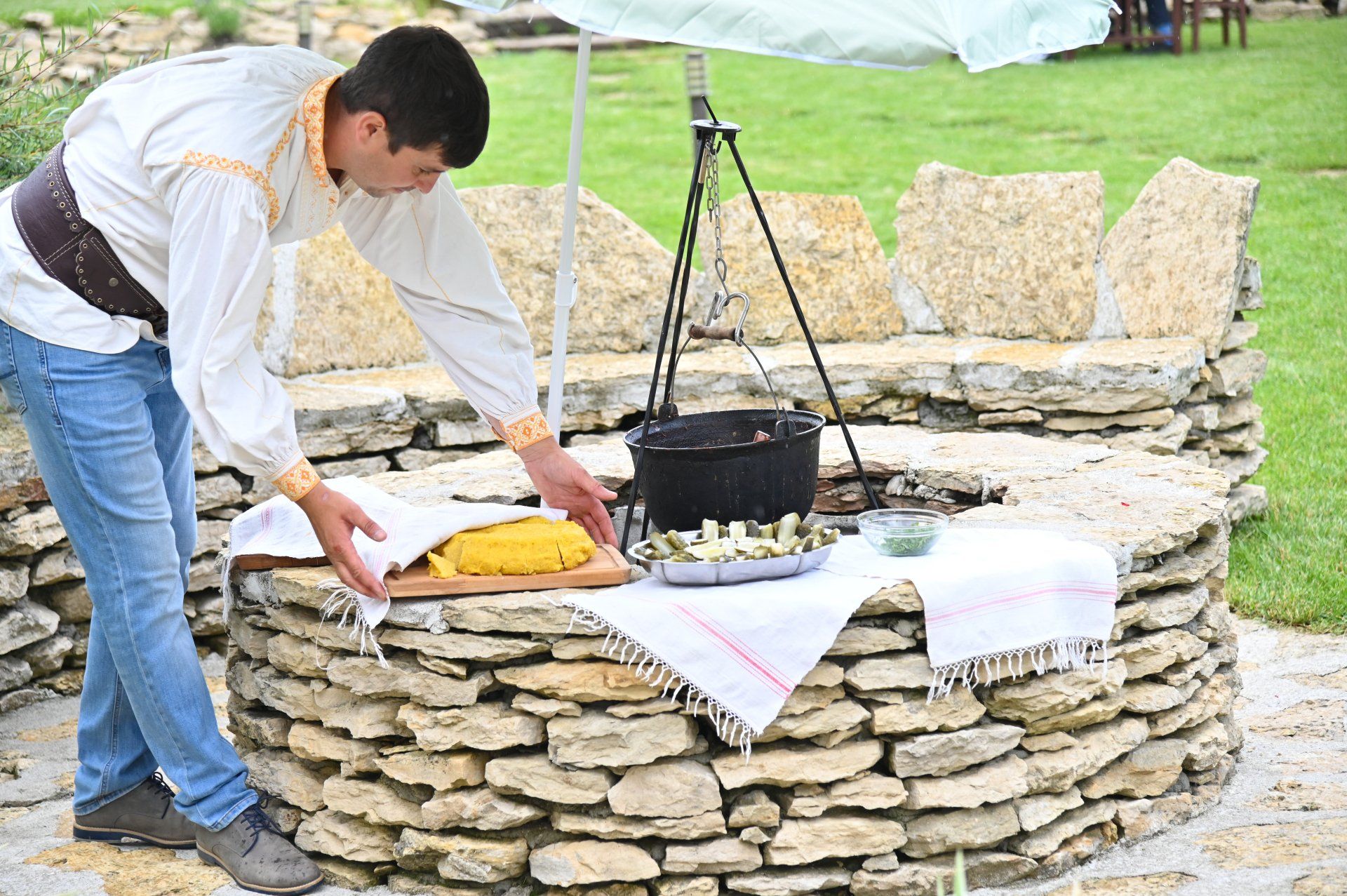 Brunch-ul a cuprins bunătăti precum: ciorbă de laște (aluat umplut cu legume) specific locală, ciorbă de fasole, tocană de miel, ceaun de porc cu mămăligă, drob, chifteluţe de dovlecei, plăcintă cu spanac, chiș de dovlecel, rondele de brânză, brânzeturi și salamuri de casă, roșii de grădină, iaurt de bivoliţă, pilaf cu prune, clătite, gosoși, plăcintă cu urdă, plăcintă de rubarbă, checuri, ceai, compot de rubarbăr și socată.