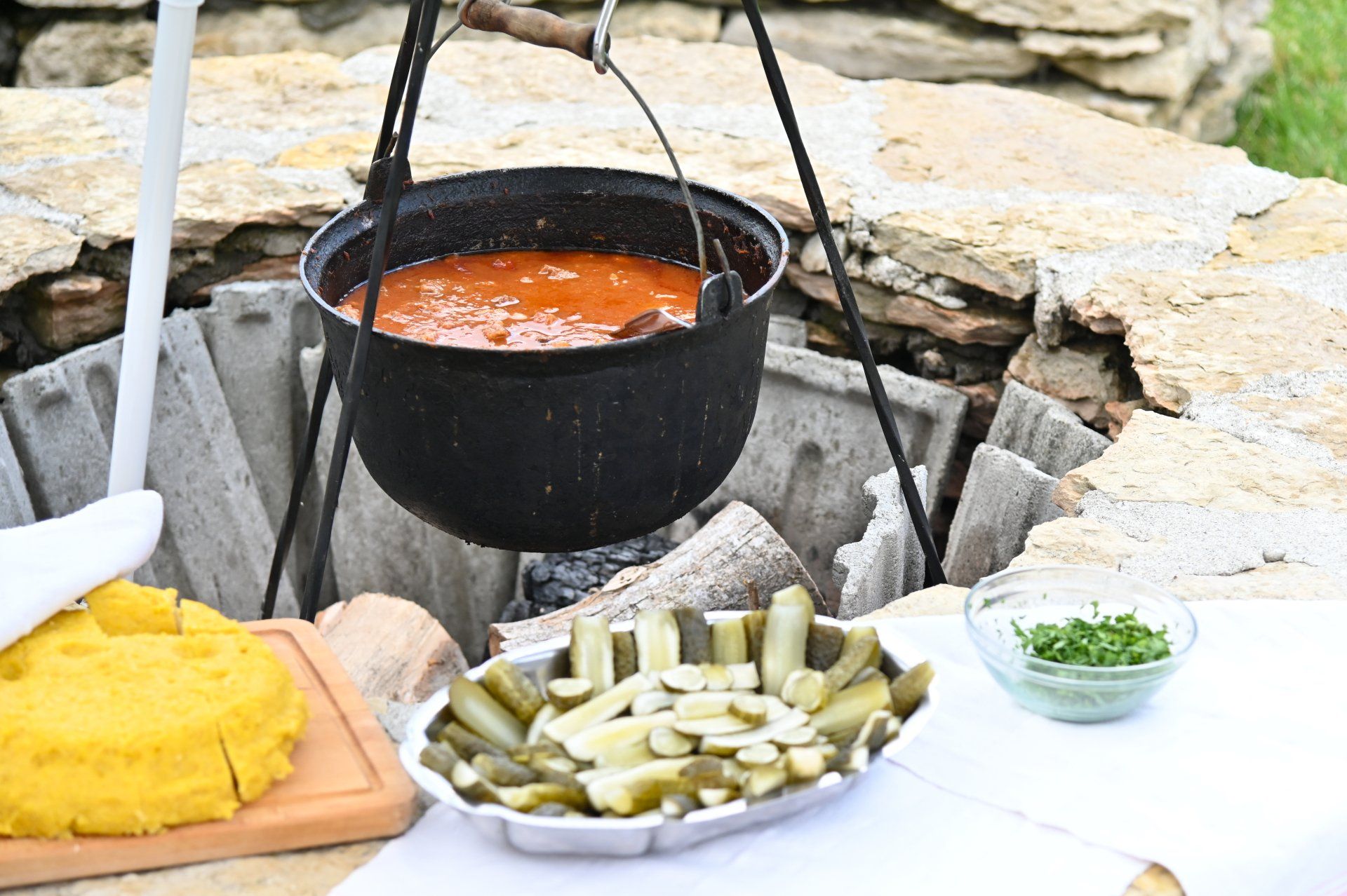 Mâncarea a fost gătită de doamnele din Comitetul de femei al Bisericii Ortodoxe, curtea fiind pusă la dispoziţie de familia Grancea.