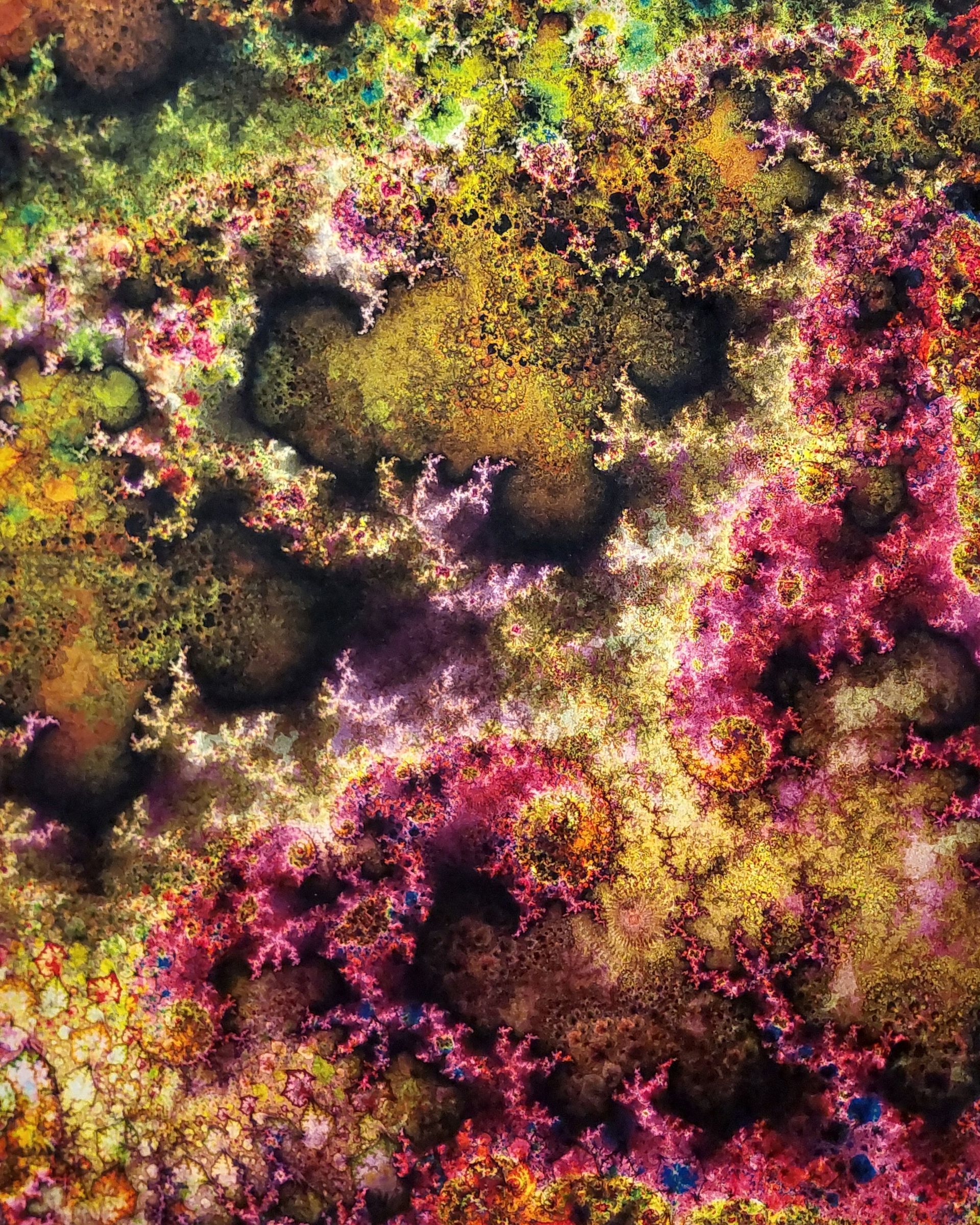 Dar ele la origine erau covoare de rugăciune tipic musulmane/ otomane, care au fost preluate, distorsionate și reinterpretate de colecționarii europeni ca fiind obiecte de artă. Deci deja un act de modernizare, de modernitate în însăși aspirarea acestei tradiții musulmane/ otomane, de către Occident. Același transfer și apropriere culturală o vedem în lucrările vestitului fotograf Thomas Ruff care a făcut timp de câțiva ani, începând din 2021, o serie de carpete care se numește “d.o.p.e”. Este o halucinație a unui software fractal care pur și simplu ia un miez formal, îl multiplică, îl desface în toate felurile, îl face să rezoneze, să reverbereze. Apoi apar culorile pe care el le fotografiază, după care le proiectează cu jet de cerneală pe un covor alb – o tehnică pe care el a dezvoltat-o împreună cu un producător din Belgia.”
