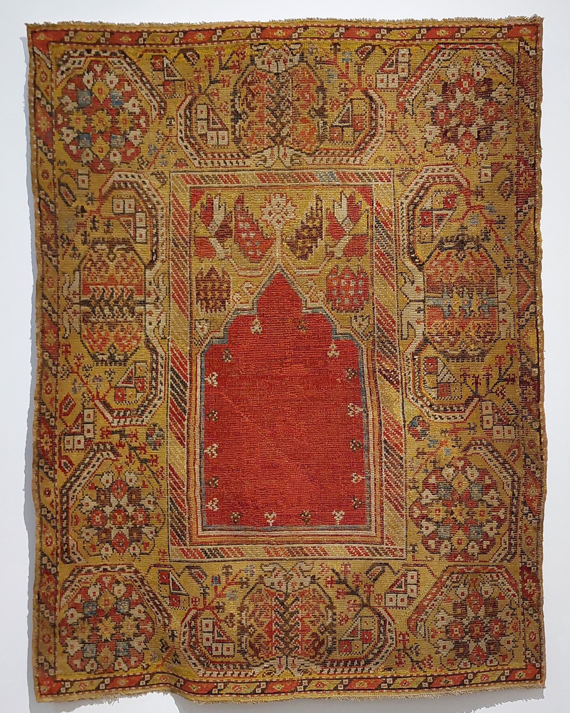 Erwin Kessler, directorul MNAR, dezvăluie despre expoziție: “Covoarele anatoliene sunt numite covoare de Transilvania încă din secolul al XVI-lea, pentru că ele treceau spre Europa de Vest prin Transilvania. Sunt covoare pe care le-ai memorat deja din tablourile lui Vermeer, lui Caravaggio, unde sunt așezate pe bănci, pe mese, pentru a arăta frumusețea, bogăția celui care le deține și într-un fel dragostea pentru frumos.