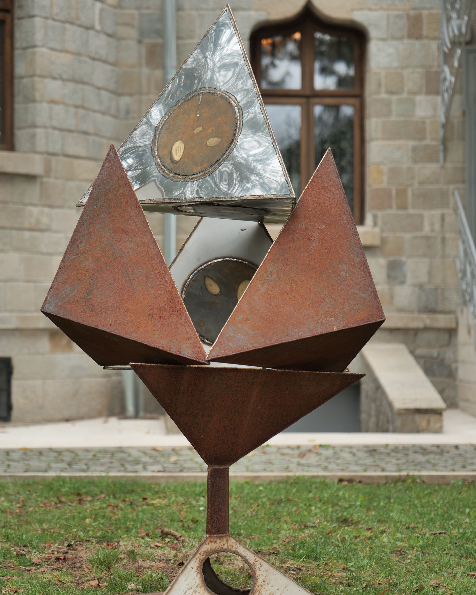 Sculpturile monumentale ale artistului Alfred Dumitriu creează punți în timp și spațiu, între lumea terestră și Universul infinit. În perioada septembrie 2025 – mai 2026, ele sunt amplasate într-un loc minunat, plin de energie și frumos, în Câmpina în curtea castelului în care a trăit marea personalitate Bogdan Petriceicu Hașdeu. Le puteți admira în curtea acestui muzeu celebru, și prin intermediul lor să vă conectați cu lumea cosmică, deoarece aceste sculpturi îndeamnă la meditație. “Forma trebuie să-ți dea o emoție, pentru că orice formă are în ea această putere” mărturisește artistul Alfred Dumitriu.
