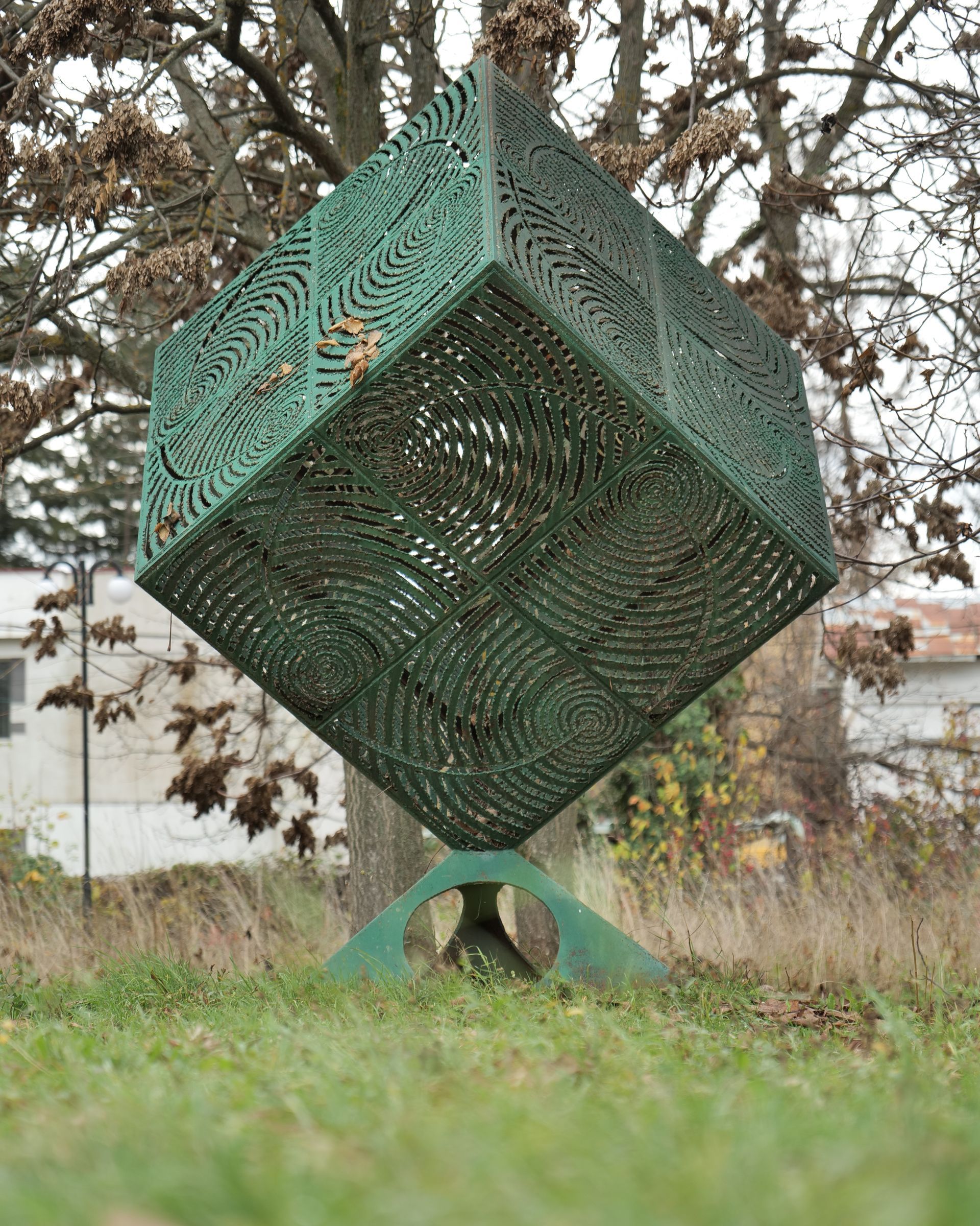 Forma de tetraedru a plecat de la un cub, care este simbolul armoniei. Dacă îl desfaci după regulile diagonalei, rezultă patru tetraedre perfect geometrice iar în interior, sâmburele, este acel tetraedru de lumină, tetraedrul perfect. Toate globurile lucioase de pe tetraedre, sunt ca niște entități care fac treceri, trimiteri. Dar practic, cel care se uită se vede pe sine însuși și poate să facă un dialog.”