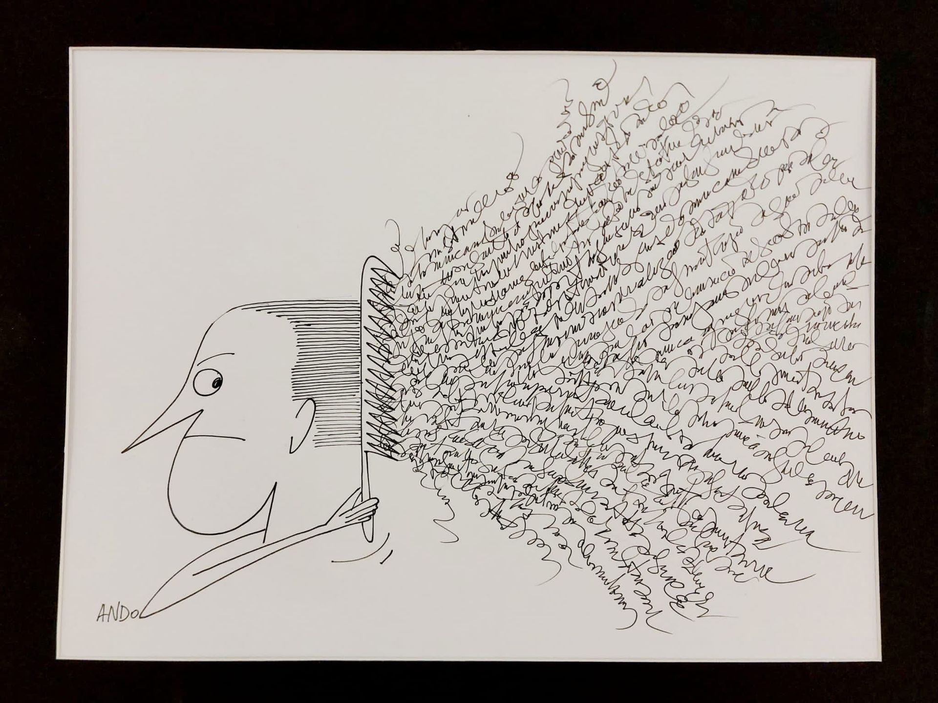 Selecția expozițională aduce împreună lucrări de grafică, respectiv caricatură, din mai multe perioade de creație ale regretatului jurnalist, grafician și realizator de emisiuni de televiziune Octavian Andronic – ANDO, alături de fotografii din arhiva familiei Andronic, prezentate prin intermediul a două instalații textile realizate de Andreea Dobranici, respectiv de Alexandru Micloș.