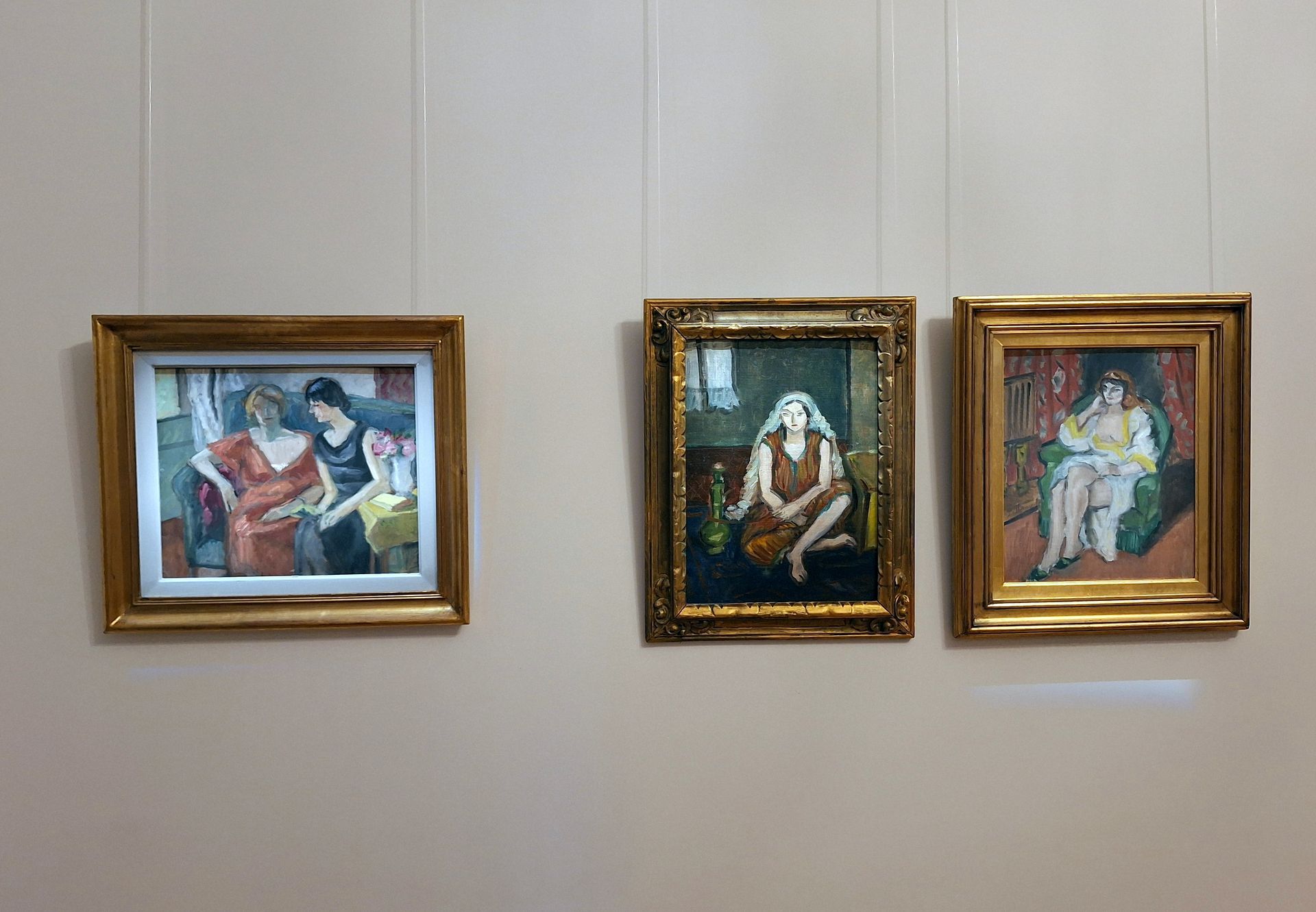 Nu lipsesc din expoziție picturile închinate femeilor, prezentate în forme cât mai relaxante, pasive chiar, adesea găsind modelele sale citind și răsfoind cărți sau publicații, înconjurate de vaze cu flori sau obiecte de mobilier. Totodată, Theodor Pallady este unul dintre cei mai de seamă pictori de nud artistic din pictura românească.