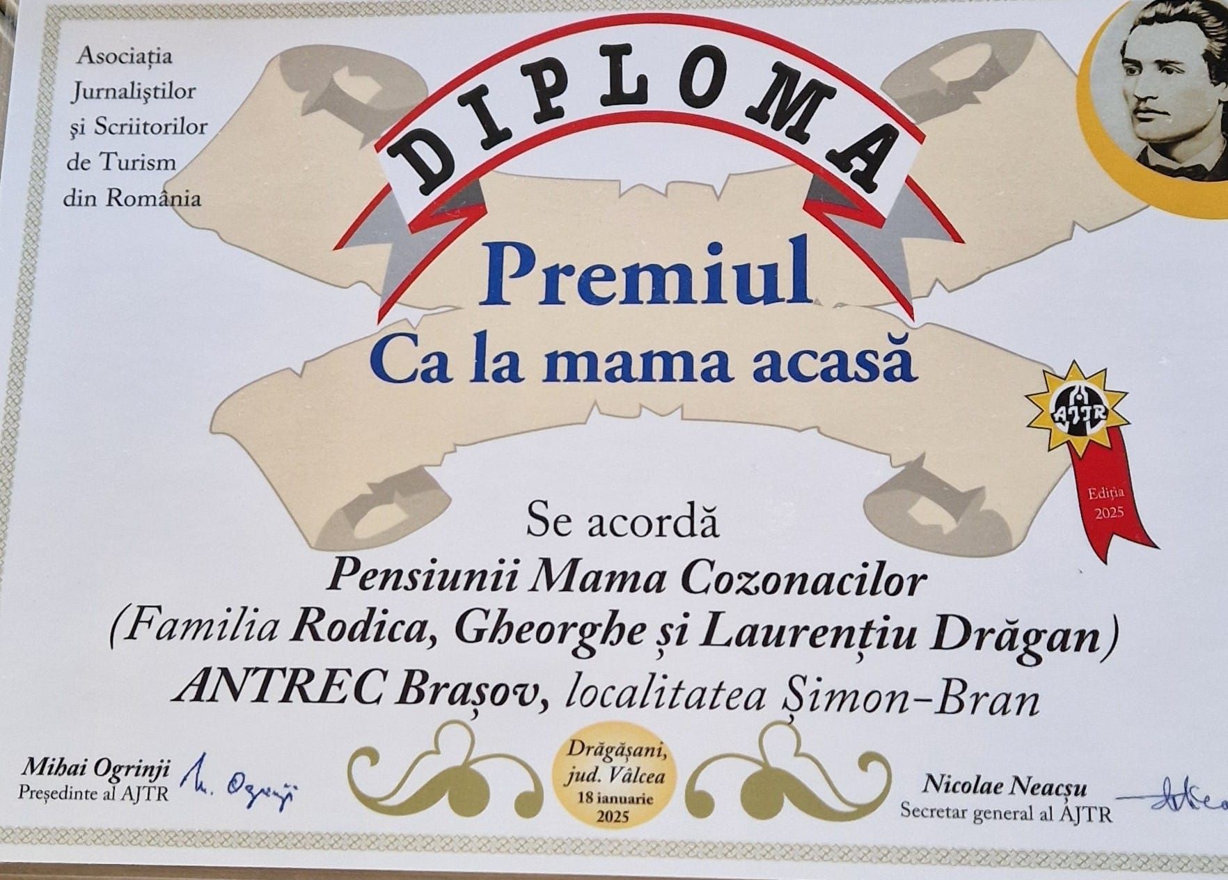Premiul „Ca la mama acasă” - Pensiunii „Mama Cozonacilor” (Familia Rodica, Gheorghe și Laurențiu Drăgan), Șimon-Bran