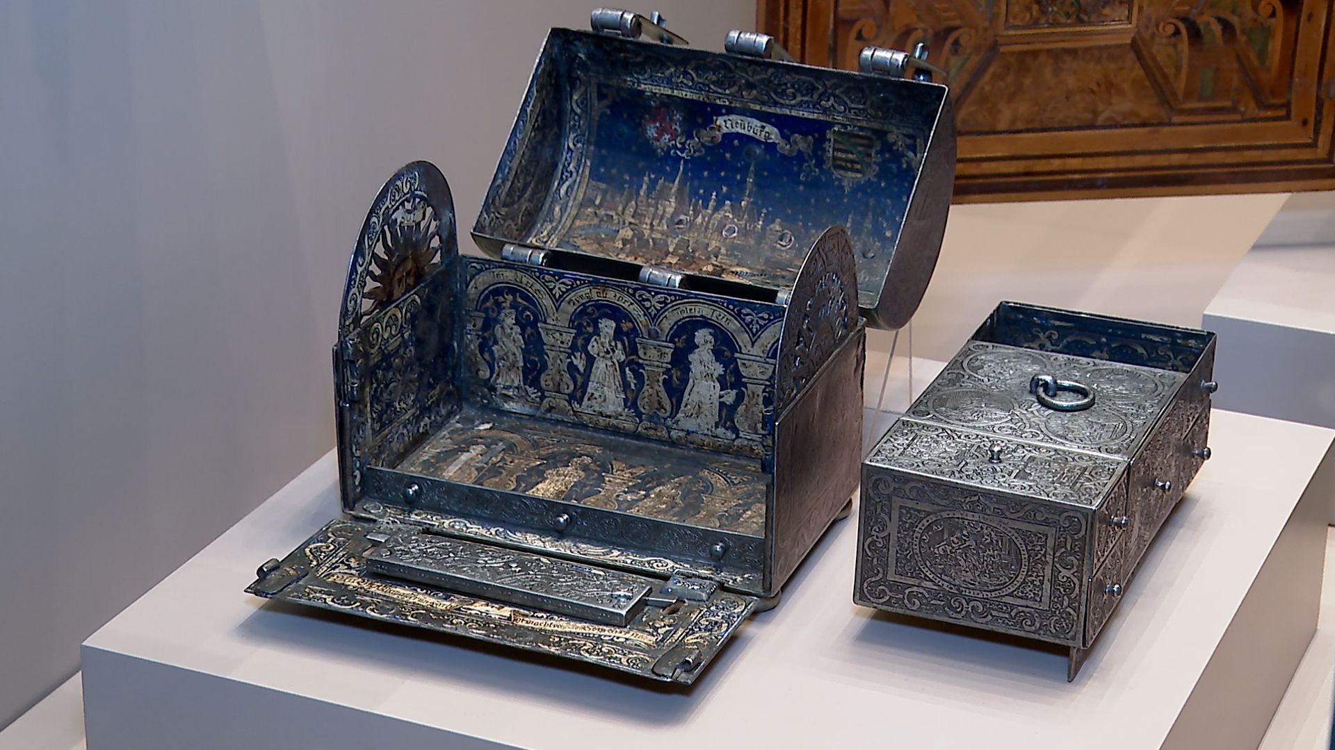 În parcursul expozițional sunt incluse o minunată casetă de căsătorie realizată la Dresda în 1586, obiecte de ceramică provenind de la faimoasele manufacturi de faianță din Delft (Olanda), Manises (Spania), Montelupo Fiorentino și Savona (Italia), Rouen, Moustiers și Sèvres (Franța), Meissen (Germania), mobilier provensal și tapiserii franceze, precum și piese deosebite din argint alături de celebrele pahare din cristal de Boemia. Măiestria meșterilor ruși poate fi admirată în delicatele piese de argint cloisonné, în paharele de argint niello sau în Bolul de punch realizat de faimosul atelier Fabergé. De asemenea, o prețioasă colecție de ceasuri ilustrează excelența meșterilor bijutieri și ceasornicari din cele mai importante ateliere de profil din Europa.