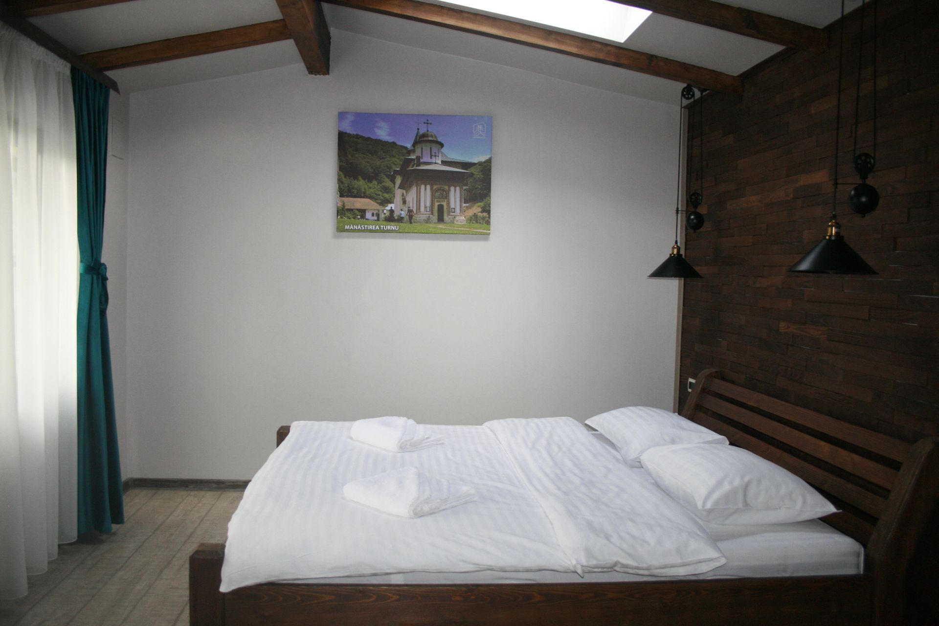 La etaj, două camere primitoare cu balcoane ce dau deopotrivă către lac și către ciubăr lasă privirile să hălăduiască nestingherite către meleagurile Oltului.