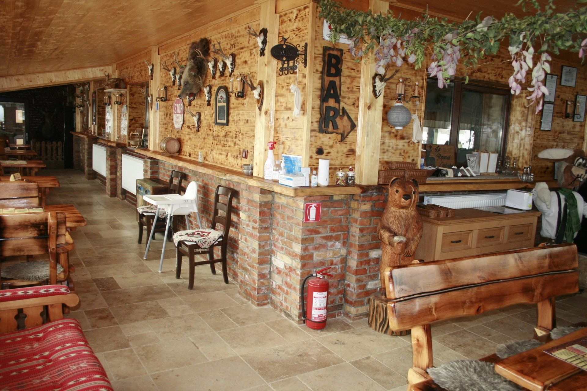 Intrarea se face prin restaurant, o sală pentru servit masa in formă de “L”, unde „cerbii, căprioarele și ieduții” au posibilitatea să servească preparate tradiționale făcute de maeștri ai bucatelor tradiționale, unde zâmbetul este cel ce-ți dă bună dimineața și ospitalitatea te însoțește pe tot parcursul zilei.