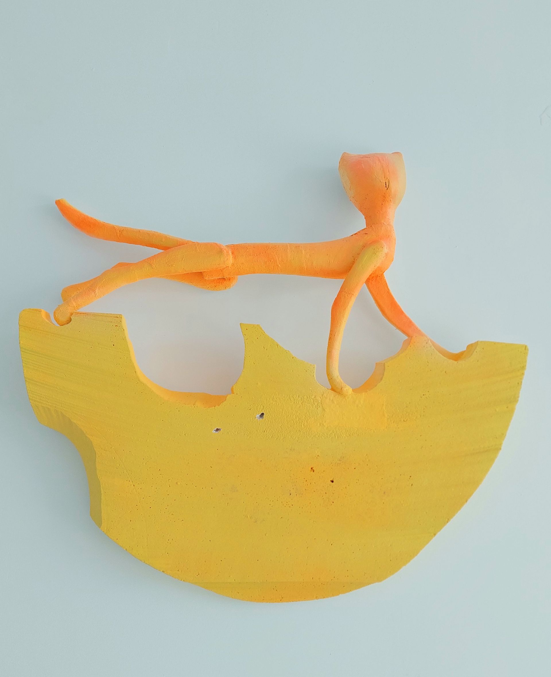 În următoarea încăpere avem desfășurarea evenimentelor și ultima lucrare din acest parcurs, pe care aș vrea s-o vadă lumea. Sculptura reprezintă de fapt întoarcerea din călătorie, fiind magnetizați tot de Pământ și de lucrurile de aici. E cumva ca un vis, coșmar, în ideea că vrei să pleci de pe Pământ dar totuși trebuie să te întorci pentru că ai niște lucruri de rezolvat aici. Imaginea e dramatică dacă te gândești că e o panteră care cade fără parașută, dar în același timp e o imagine jucăușă.”