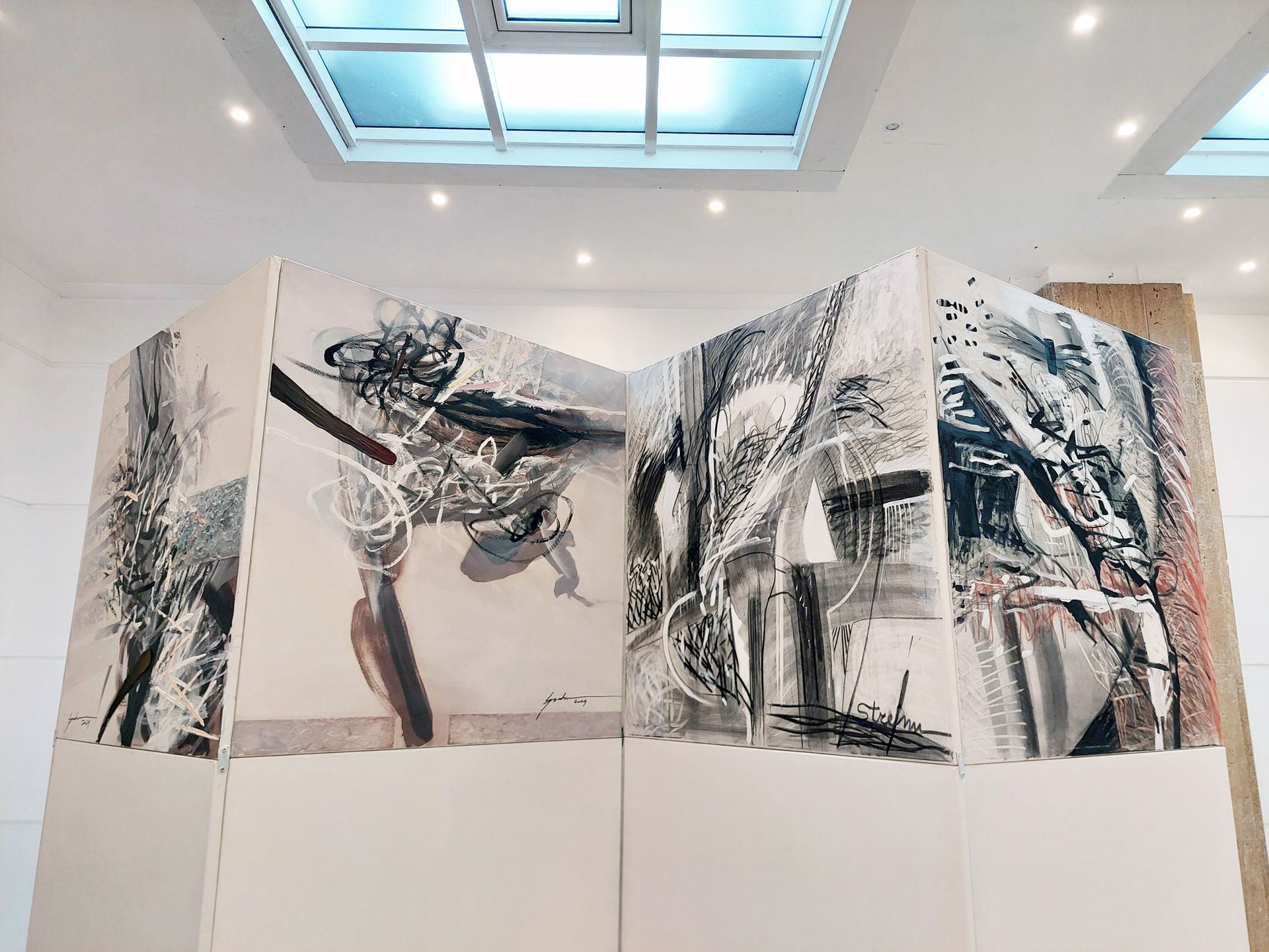 Eduard Andrei, critic de artă, spune: “Ioana Lavinia Streinu are niște pânze de mari dimensiuni și totodată desene în cărbune, în care practic ea se exprimă în maniera gestual-abstractă. Sunt compoziții foarte dinamice, compoziții deschise în care uneori se poate decela câte un detaliu figurativ care pare că se continuă dincolo de limitele pânzei, lăsând privitorul să-și imagineze cum se pot ele continua și mai departe.